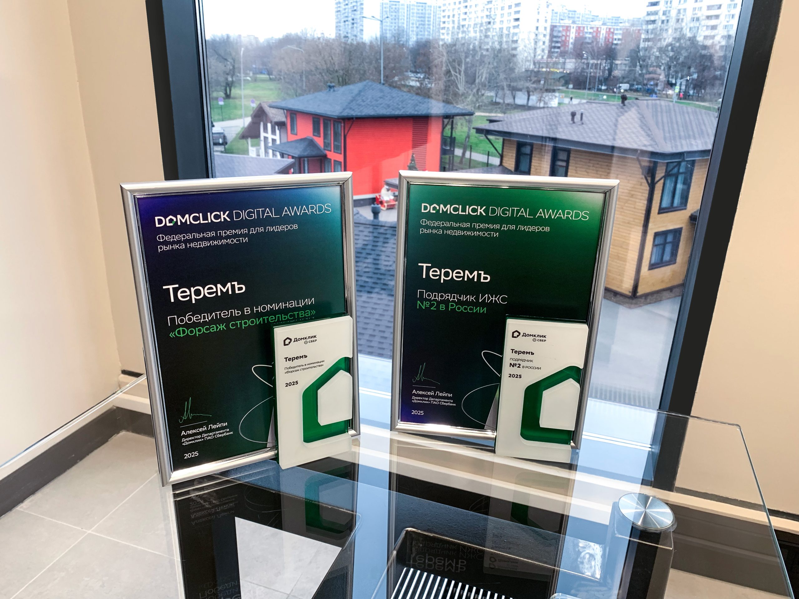 Компания «Теремъ» выражает благодарность организаторам форума и экспертному жюри премии. Эти награды — подтверждение нашей глубокой экспертизы в строительстве загородных проектов под ключ, где скорость, качество и забота о клиентах являются неизменными стандартами.